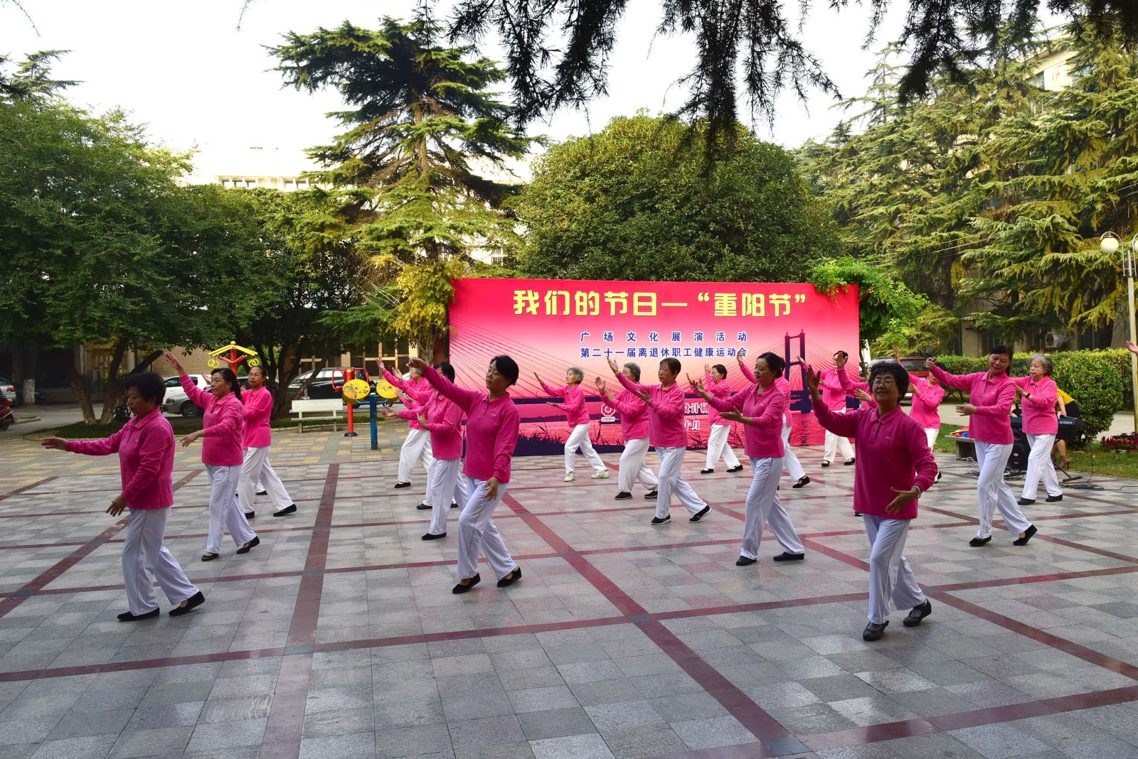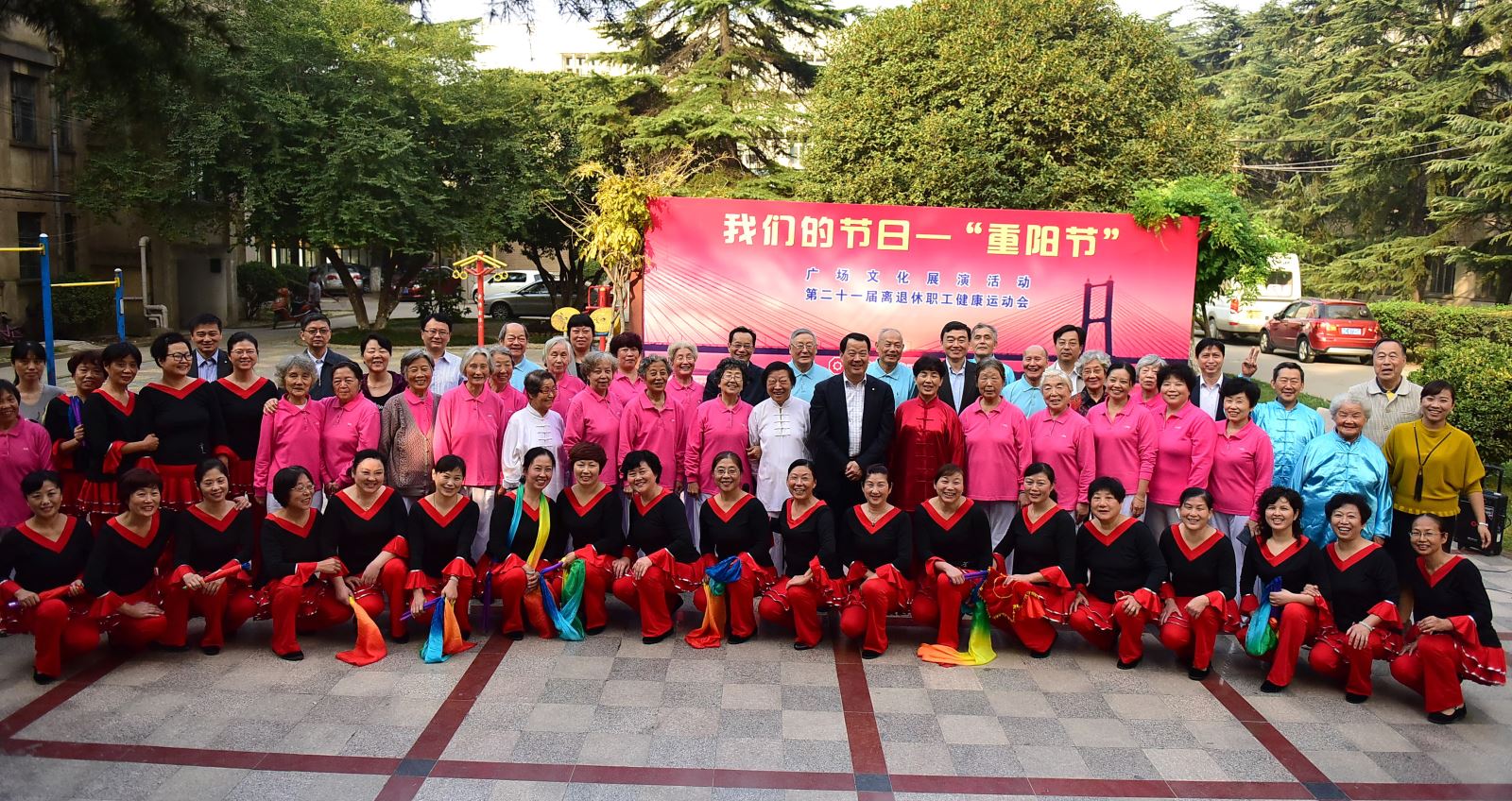10月19日,蚌埠院离退休老同志们欢聚一堂 青青草影视,举办“重阳节”主题广场文化展演活动暨离退休职工第二十一届健康运动会。