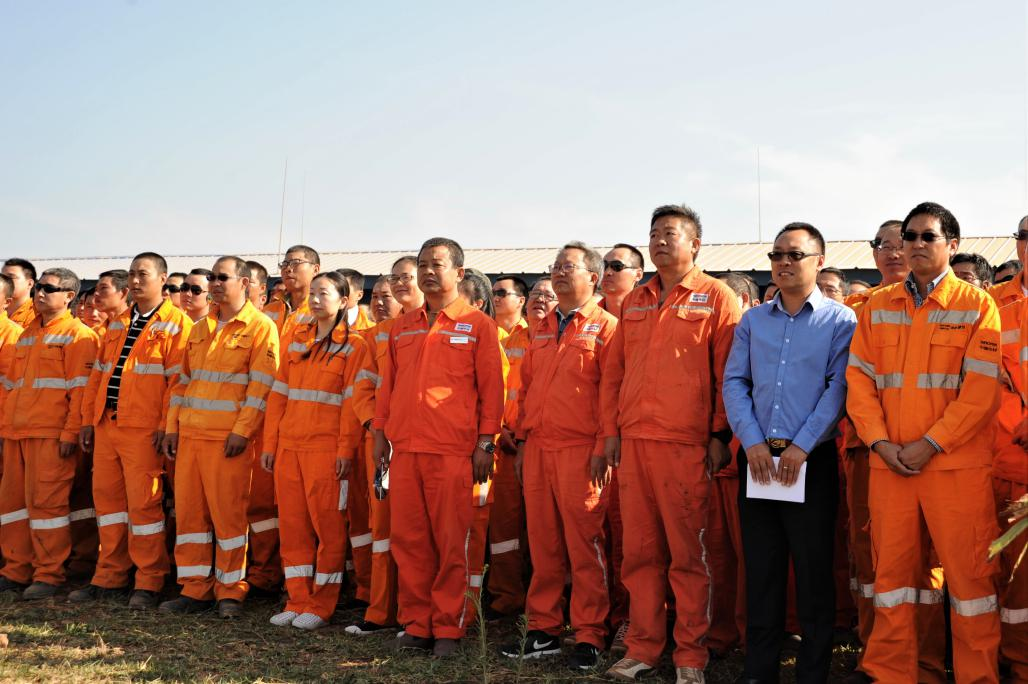 赞比亚当地时间上午8点半,员工们统一着装,队列整齐,早早的齐聚在项目驻地广场 青青草影视在线,庄严嘹亮的国歌在活动现场响起,所有员工向缓缓升起的五星红旗行注目礼,不约而同高声齐唱国歌,在这特殊的日子里,以升国旗唱国歌的方式,在万里之遥的赞比亚,和神州大地共同欢庆共和国68周年华诞,祝福伟大的祖国更加繁荣昌盛。