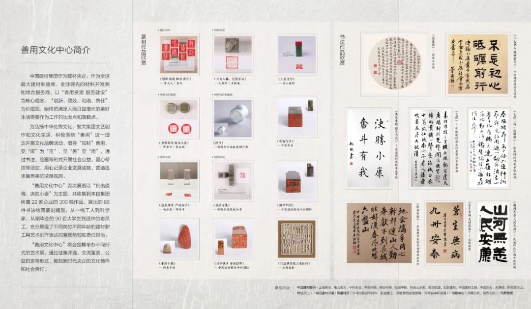 中国建材集团以“善用资源 服务建设”为核心理念,“创新,绩效,和谐,责任”为价值观,始终把满足人民日益增长的美好生活需要作为工作的出发点和落脚点,为弘扬中华优秀文化,繁荣集团文艺创作和文化生活 青青草影视,积极围绕“善用”这一理念开展文化品牌活动,倡导“知材”善用,变“废”为“宝”,至“善”至“用”,通过篆刻,书法,绘画,摄影等形式记录企业发展成就,营造追求真善美的浓厚氛围。