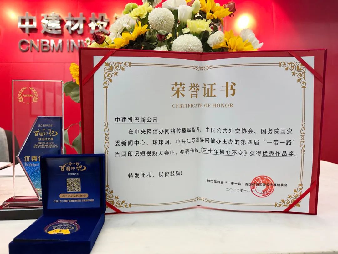 "青青草影视在线" 我们又拿奖了!中国建材集团2部作品荣获“一带一路”百国印记短视频大赛奖项