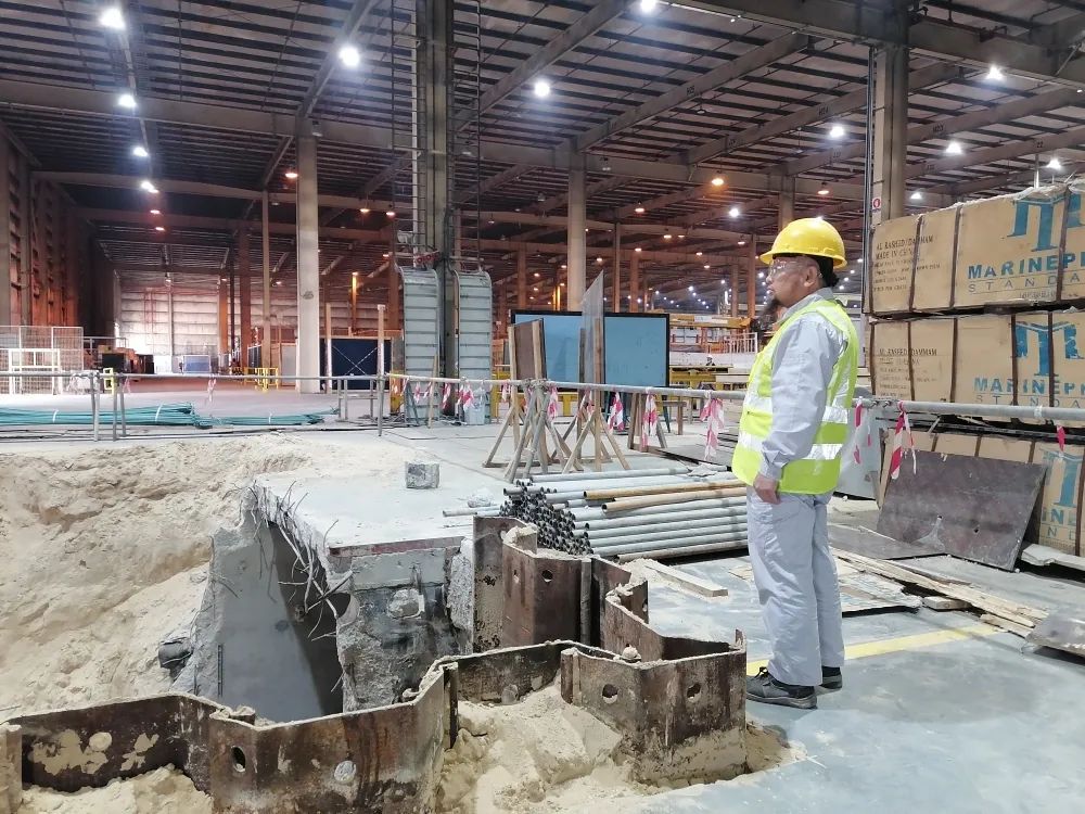 沙特加迪安玻璃窑改造项目李金峰在岗检查进度