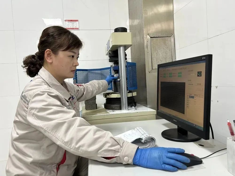 洛阳中联化验室物理组王瑞娜在岗进行试验