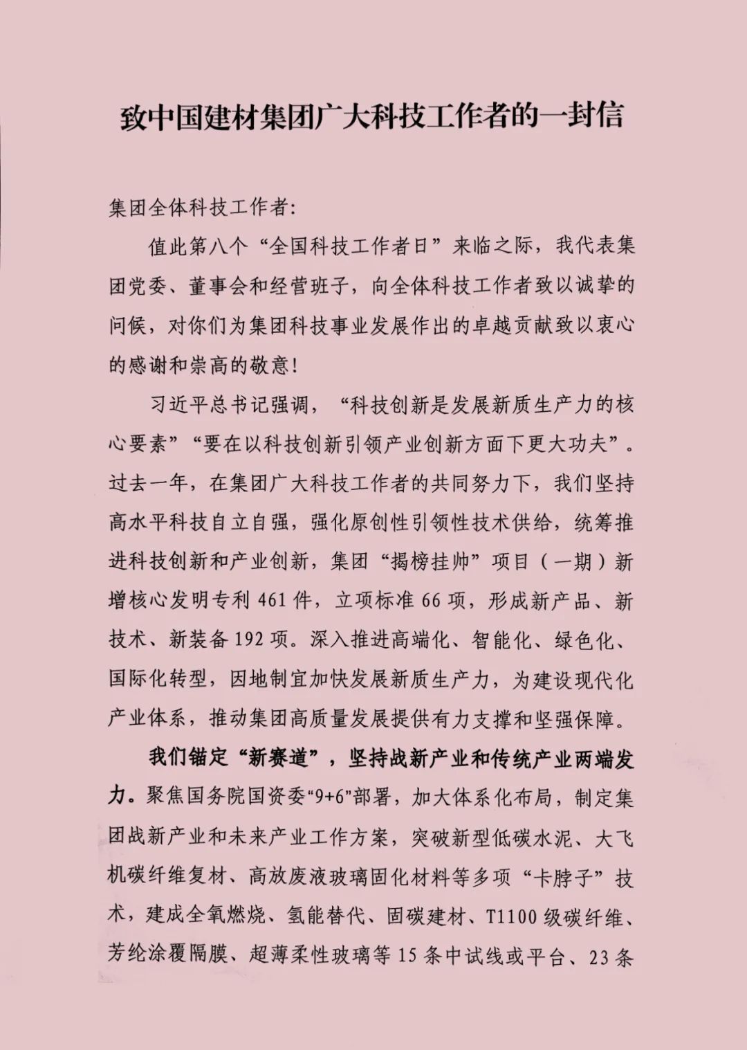"青青草影视" 致中国建材集团广大科技工作者的一封信