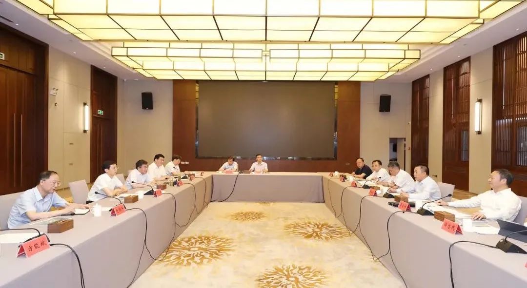 南方水泥副总裁高峰,中建材新材料有限公司董事长王盛伟 青青草视频,地勘中心安徽总队总队长许国礼,集团派驻石台县挂职帮扶干部等有关人员参加了调研座谈。