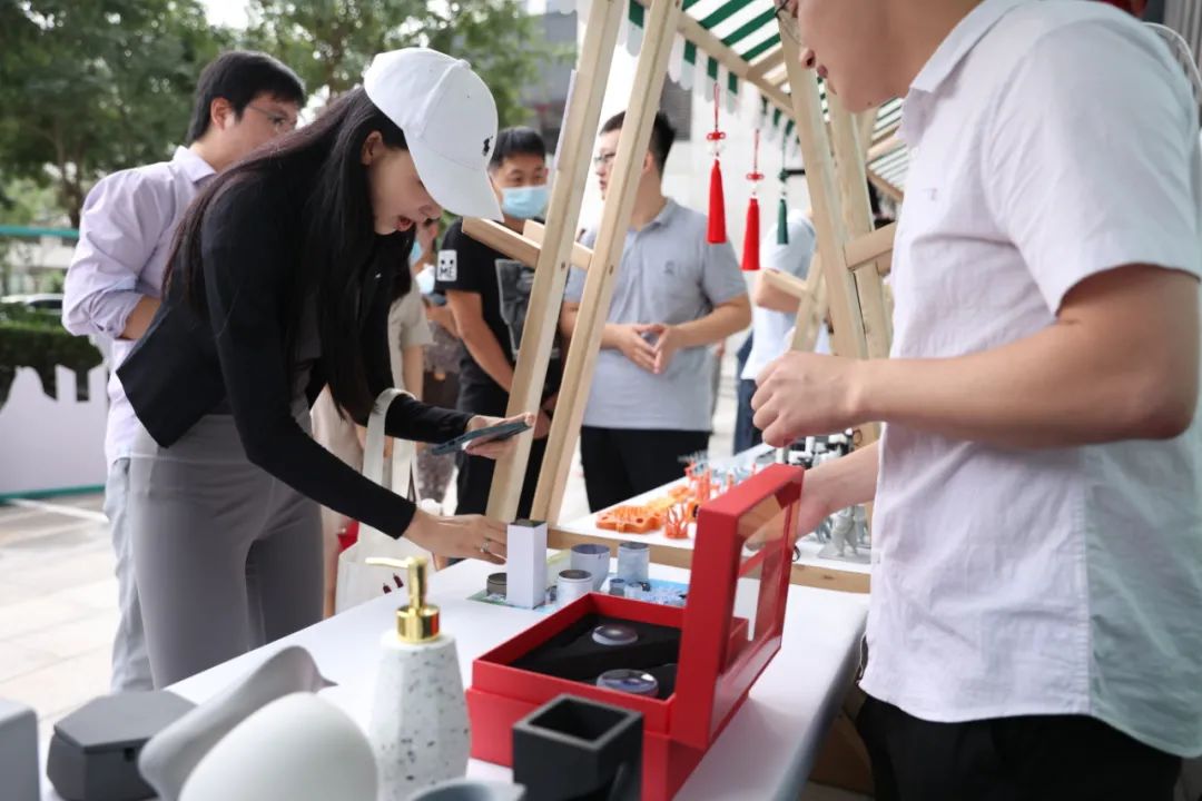 来自财务公司的小伙伴:“文创集市这种形式特别好,不仅可以近距离的看到,还能触摸我们的材料产品,像这些水泥纸巾盒,陶瓷挂坠没想到离我们的生活这么近,作为建材的一位员工,真的很为我们的材料产品自豪 青青草视频,”。