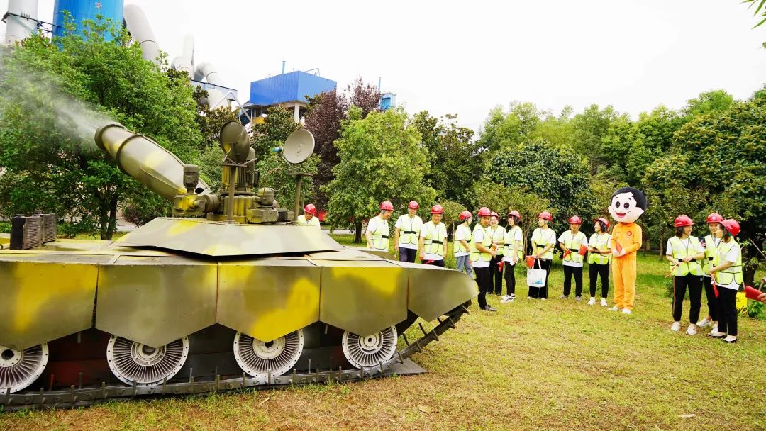 一台威风凛凛的喷水吐雾的“坦克”吸引了众人的目光,这是卧龙中联利用废旧材料自行设计制作 青青草影视高清,寓意积极践行“材料创造美好世界”的企业使命和绿色环保低碳新理念,在高质量发展的新征程上攻坚克难,勇往直前。