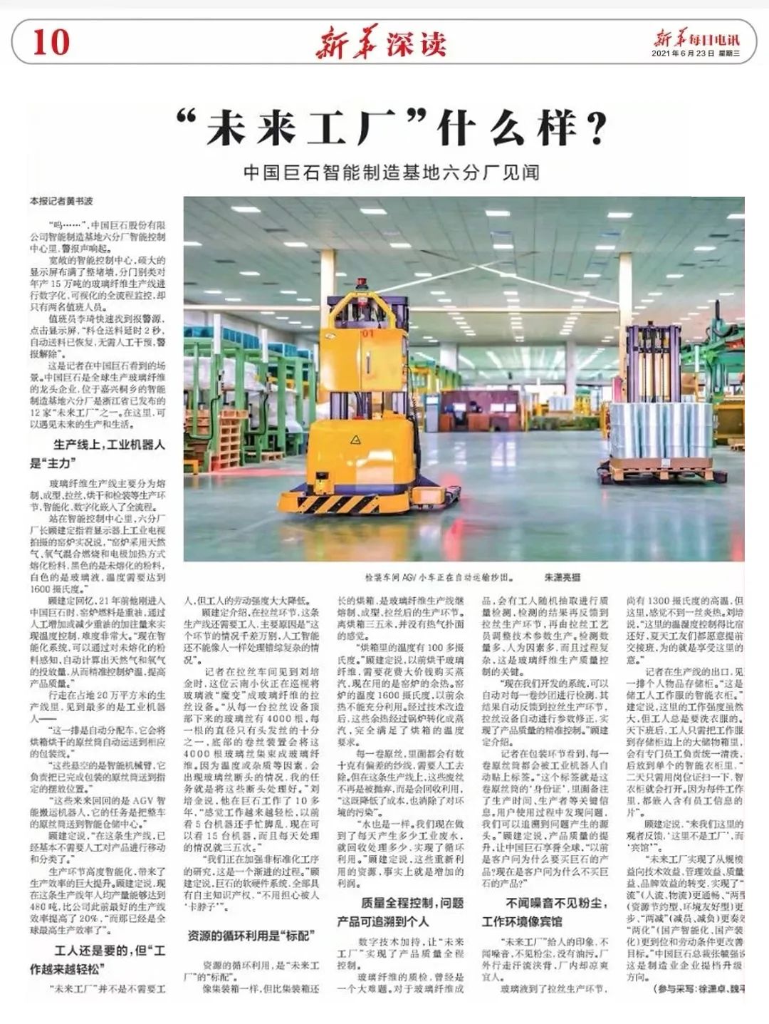 "青青草影视高清" 《新华每日电讯》走进中建材 | “未来工厂什么样?”去中国巨石智能制造基地看看吧