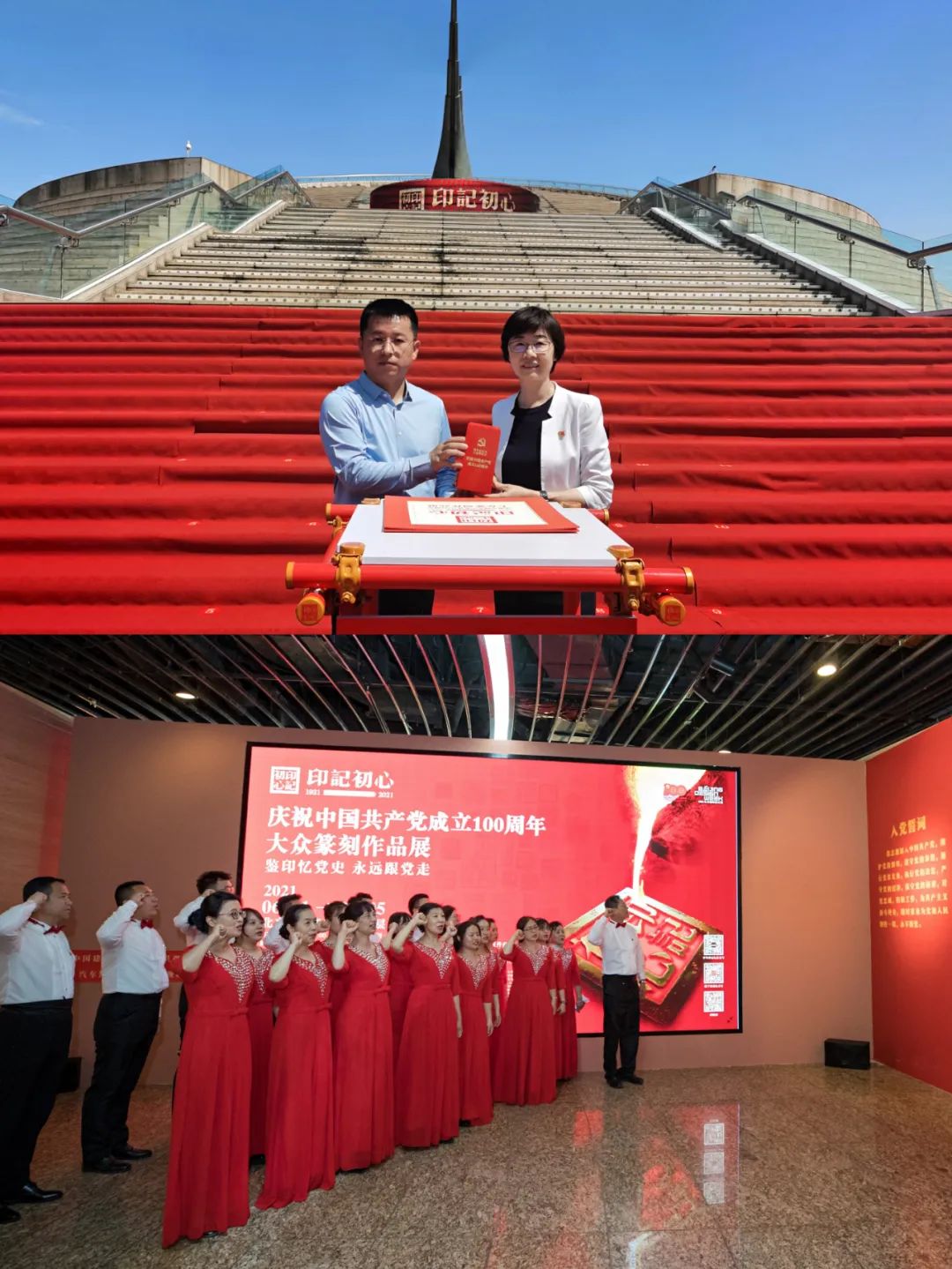 健跑前夕 青青草影视高清,孙力实向中华世纪坛赠送了新材料印章,广大党员参观中华世纪坛举办的“印记初心——庆祝中国共产党成立100周年大众篆刻作品展”,并开展重温入党誓词活动。