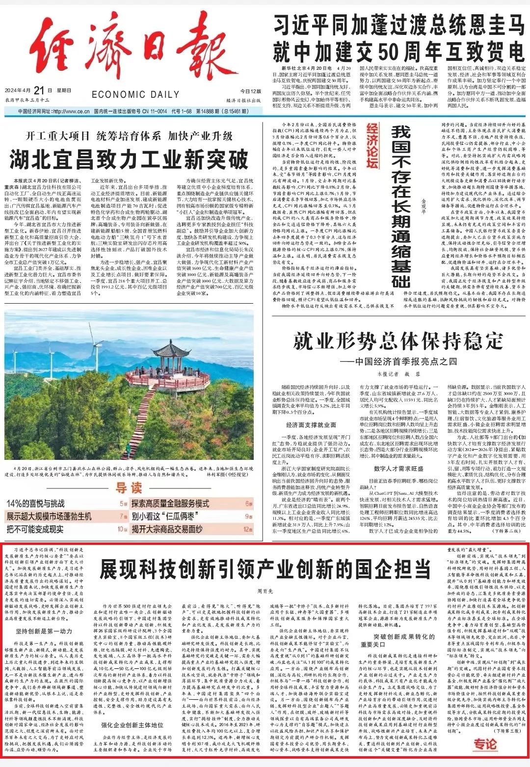 来源:《经济日报》、集团党委宣传部 发布时间:2024-04-244月21日,《经济日报》一版刊发中国建材集团党委书记 青青草影视,董事长周育先的专论,文章围绕“加快发展新质生产力”展开论述,阐述坚持创新是第一动力,更好发挥企业创新主体作用,努力突破创新成果转化的重要关口,下面一起来看详细内容~。