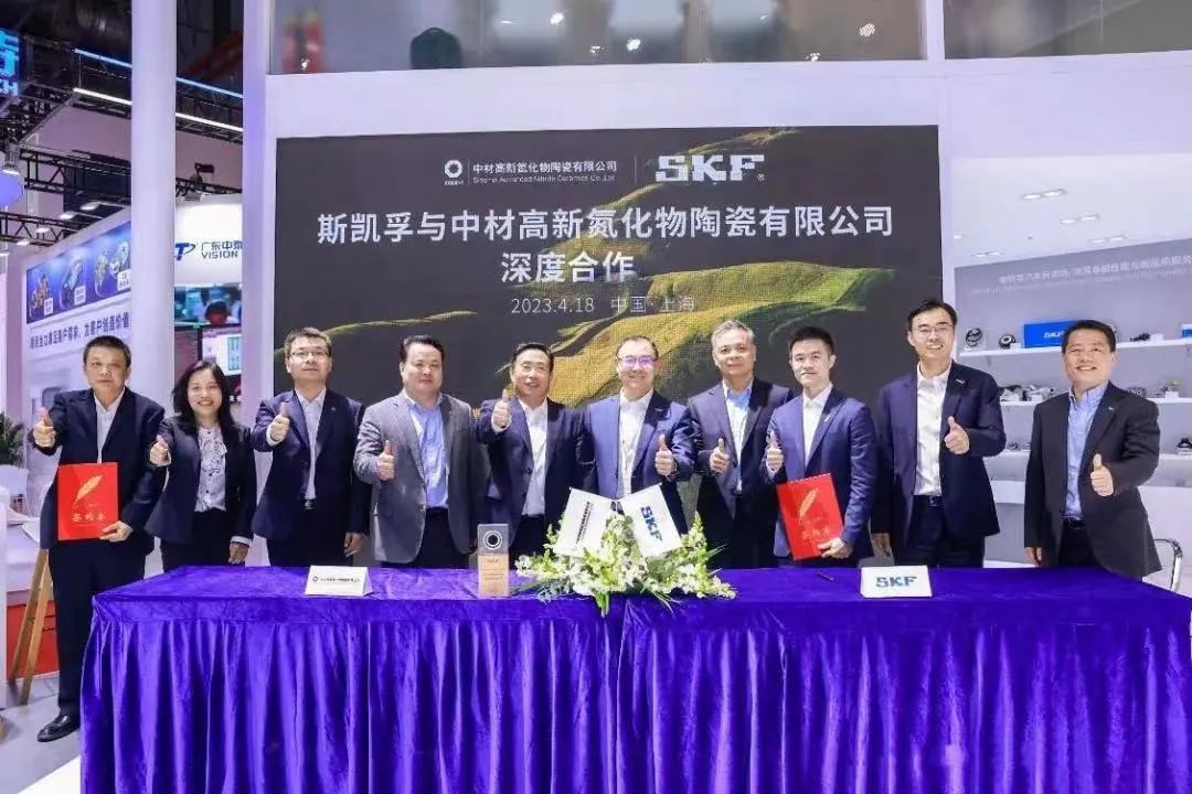 近日,中材高新氮化物陶瓷有限公司与斯凯孚正式签署合作意向书,携手拓展陶瓷球优质化,本地化,规模化应用前景,双方将充分发挥各自在氮化硅材料,陶瓷球生产 青青草影视高清,轴承应用方面的优势,共同研发,生产用于包括新能源汽车,精密机床等领域的陶瓷球,为全球市场提供品质可靠的混合陶瓷球轴承产品及解决方案。