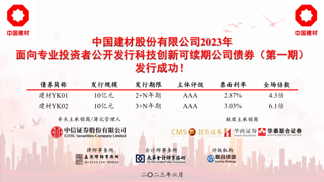 中国建材股份成功发行首期青青草影视类可续期公司债