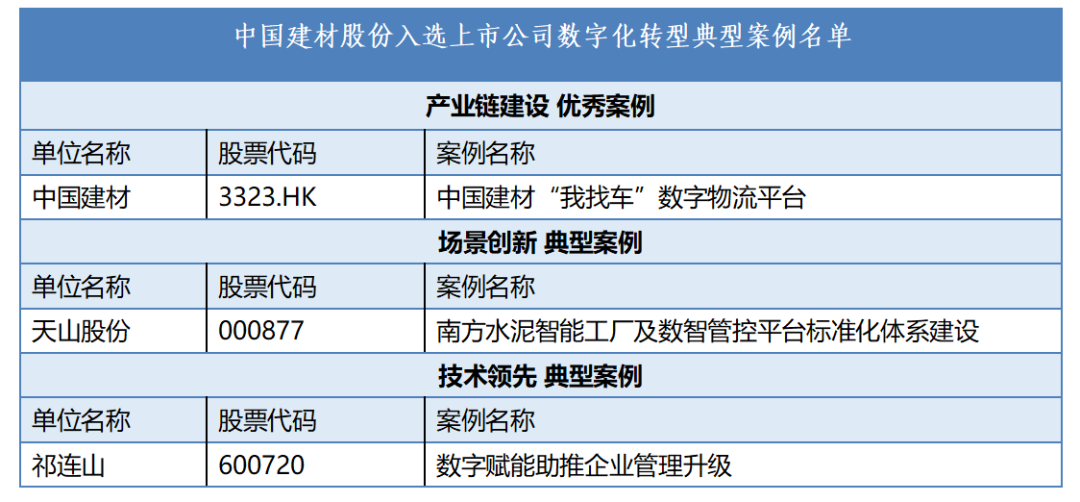 中国建材股份三项场景入选2023年度上市公司数字化转型案例