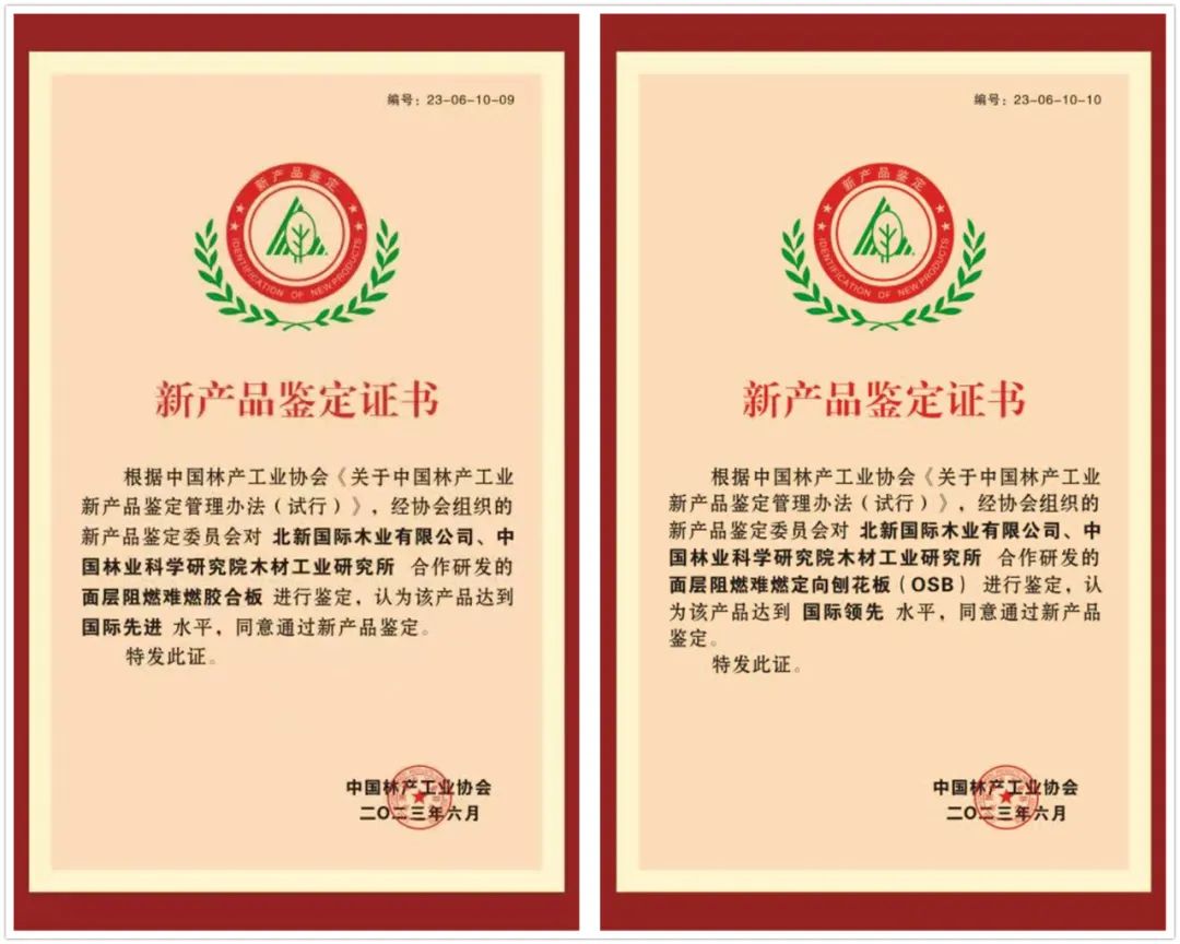 北新木业两项新产品通过中国林产工业协会鉴定