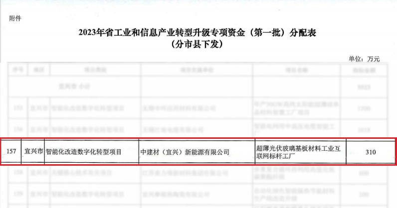 近日,中建材(宜兴)新能源有限公司“超薄光伏玻璃基板材料工业互联网标杆工厂”项目荣获2023年第一批江苏省工业和信息产业转型升级专项资金310万元,转型升级专项资金是省级财政预算安排,用于支持全省工业和信息产业转型升级,提升经济发展质量和效益 青青草影视在线,提高公共服务能力和水平等方面的专项资金。
