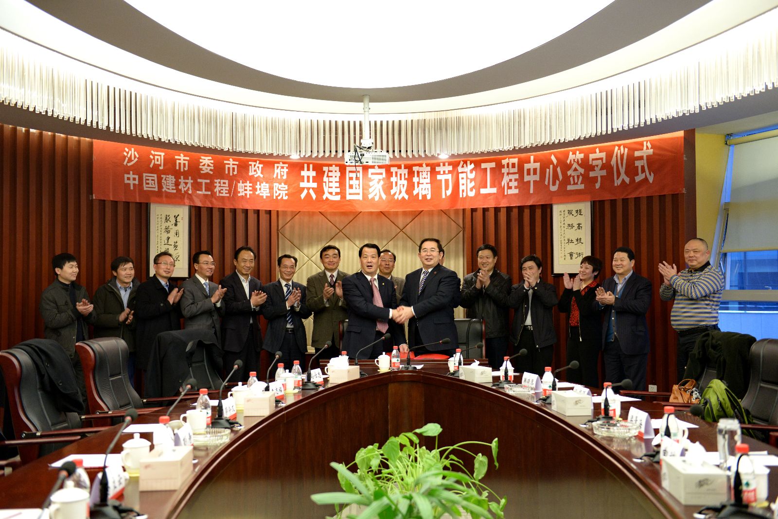 1月29日,沙河市委书记曲斌 青青草影视,市长刘果芳率团访问了蚌埠玻璃工业设计研究院,与蚌埠玻璃工业设计研究院院长彭寿举行了友好会谈并签署了共建玻璃工业节能技术国家地方联合工程研究中心协议。